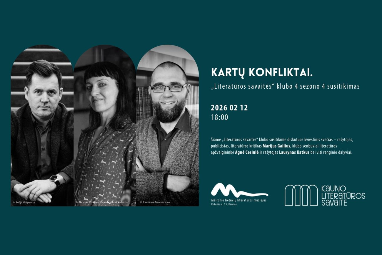 Šiame „Literatūros savaitės“ klubo susitikime diskutuos kviestinis svečias – rašytojas, publicistas, literatūros kritikas 𝐌𝐚𝐫𝐢𝐣𝐮𝐬 𝐆𝐚𝐢𝐥𝐢𝐮𝐬, klubo senbuviai rašytojas 𝐋𝐚𝐮𝐫𝐲𝐧𝐚𝐬 𝐊𝐚𝐭𝐤𝐮𝐬 ir literatūros apžvalgininkė 𝐀𝐠𝐧𝐞̇ 𝐂𝐞𝐬𝐢𝐮𝐥𝐞̇ bei visi renginio dalyviai.